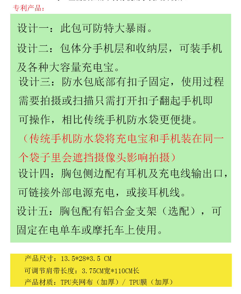 外卖骑手专用装备手机防水袋可触屏防雨胸包可外接电充电宝大容量